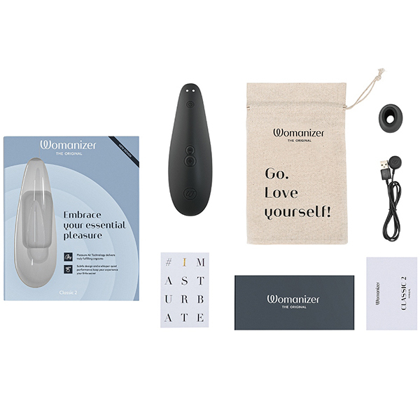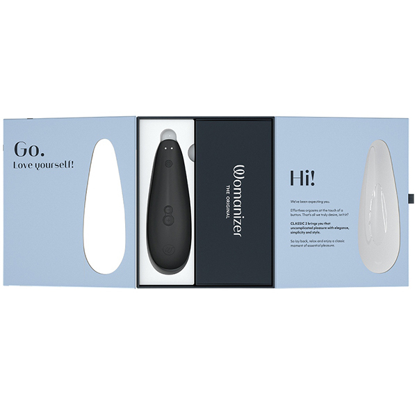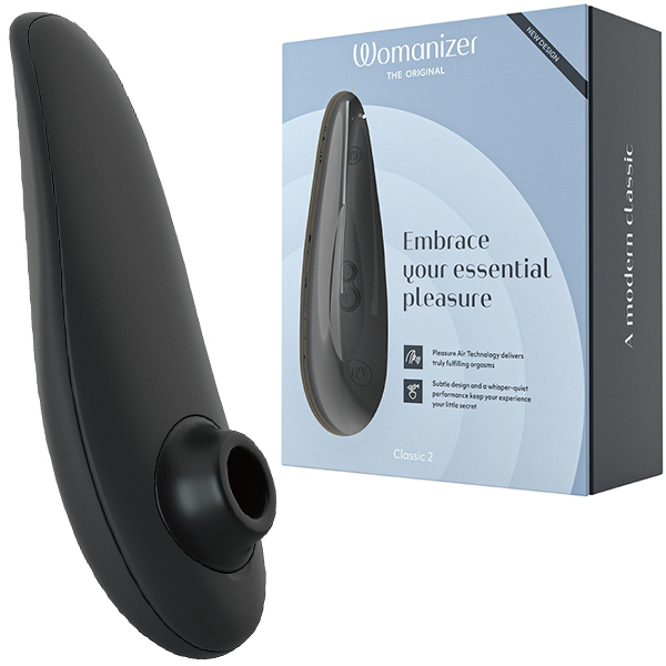 従来のバイブとは違い、クリトリスを吸うことを目的とした人気のトーイ・ウーマナイザーから入門用が登場!その名も「ウーマナイザー クラシック2 (ブラック)」。プレミアムほどの高性能は要らない、でも高級感は失いたくない!そういう人のために登場したのが本作です。これから初めてのウーマナイザーを楽しむのに最適!吸引部は柔らかな肌触りの良いシリコンとなり、吸引強弱も8から10段階へ。オーガズムに達したときに電源ボタンを押すことで最弱の吸引力になる「アフタグローフューチャー」という新機能も搭載♪これによりイッたあともいきなりブツッと切れることなくゆったりとした余韻を楽しむことができます。※こちらの商品は受注発注商品の為、ご注文から発送までに3、4営業日掛かる場合が御座います。
