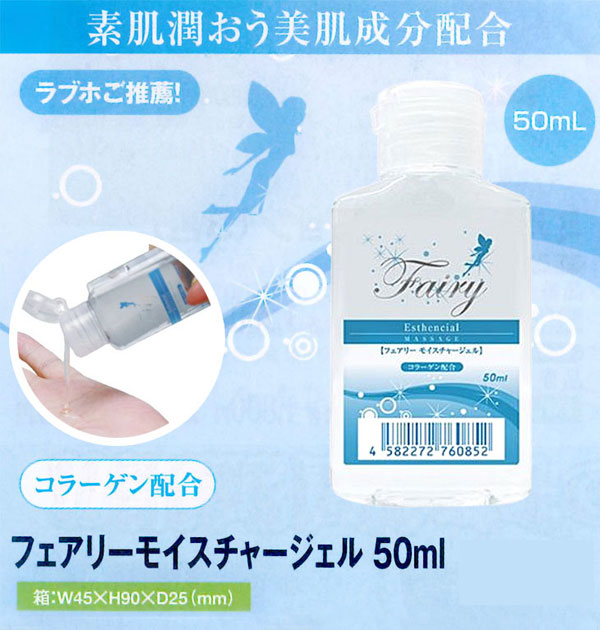 素肌潤うコラーゲンを配合したお肌にやさしいボディローション「フェアリーモイスチャージェル 50ml」。外出時の携帯サイズとして重宝する1回の使い切りサイズなのでとっても便利!乾きにくく適度な粘度でなめらかさを維持するので、濡れにくい女性の局部にも安心してお使い頂けます!もちろんオナニー用にもオススメです!