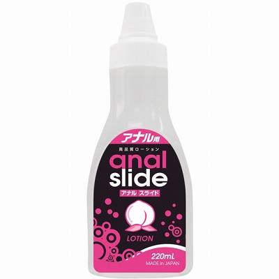 超高粘度で乾きにくいアナル専用ローション「アナルスライド 220ml」。アナルプレイ中にローションが乾いてしまい、盛り上がった気分を台無しにされた方はいませんか!?もうそんな心配はいりません!アナルスライドは少量でも長時間持続しヌルヌル感覚が抜群!先端を細くしたボトルのため、アナルプレイ中にも違和感なくお使い頂けます♪