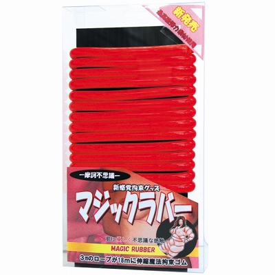 新感覚なSM拘束グッズがこちらの「マジックラバー」。3mの長さが、最長約18mまで伸びる摩訶不思議なロープ!どのくらい伸ばすかによって、締め付ける強さが変わるのが特徴的!もちもちした感触が得られるソフトラバー製を使用。定番の縄もいいですが、こちらの拘束具を使い、SMプレイの幅を広げてみませんか?