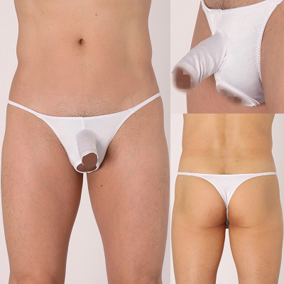 大胆カットの露出デザインに釘付け!セクシーなメンズTバックショーツ(ホワイト)。バックスタイルもTバック仕様で、セクシーかつ男らしい仕上がりに。ヤンチャな貴方を目覚めさせてくれそうな、遊び心満載の男性用パンツです。