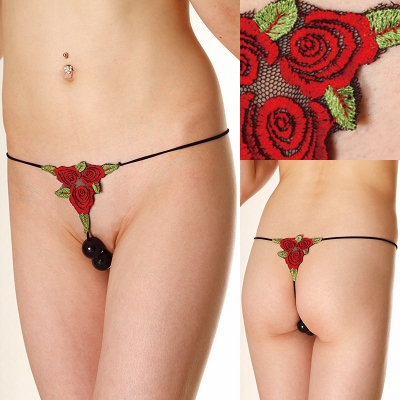 <EROX>大玉ビーズ付き!バラ刺繍のエロティックなパールショーツ。3つの赤いバラ刺繍モチーフを、フロントとバックにあしらい、女性らしさを演出!クロッチ部分に秘密のビーズを隠し持つ、超刺激的なセクシーランジェリーです。