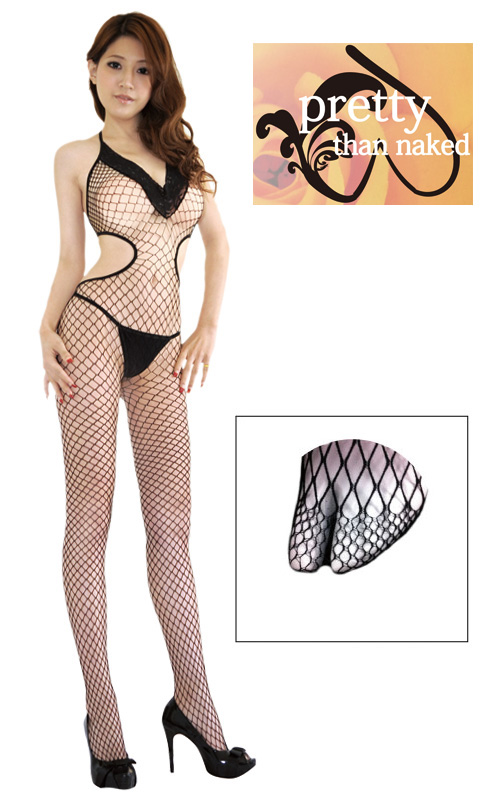 胸元が印象的!オープンクロッチタイプのボディストッキングです。ホルタータイプのボディストッキングは、黒一色の大きめメッシュと美しいバストを強調する胸元のV字が魅力的。さらに、大胆なサイドカットとエロチックなオープンクロッチにより、露出した肌との対比が美しいセクシーなランジェリーとなっています。素材はナイロン80%、スパンデックス20%使用。