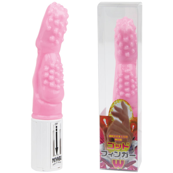 一人で潮吹き体験!?本物の指のように自由自在に動くピンクカラーのバイブ「ゴッドフィンガーW」。コンパクトで扱いやすいボディ!小さくても機能性が重視されており、本体2箇所にモーターを搭載!存在感抜群の無数のイボイボが、アナタに最高の刺激を与えてくれます!一人でも二人でも楽しめるバイブです。是非、神の指で昇天しちゃって下さい!単4電池×3本使用。