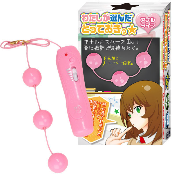 大きすぎず、小さすぎない!ちょうどいいサイズだから初心者から上級者まで満足できる、アナル専用ローター「わたしが選んだとっておきっ」。3つ並んだボールのうち、先端のボールだけにローターを搭載!3段階の強力振動がじんわりとした快感を伝えます。また、操作部本体の先端にブルーLEDを搭載!秘部をイヤらしく照らしてくれるので、ムード作りもバッチリ!見て、使って、大満足できるアナル専用ローターです。単四電池×3本付属。