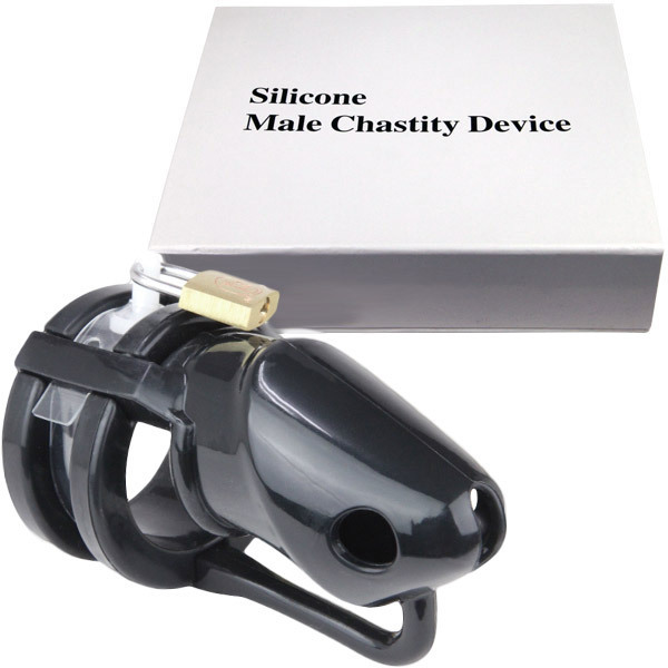 M男の射精管理に!初めてでも挑戦しやすい、高級ブラックシリコン製のペニス貞操帯。あなたのSM願望を叶えます!南京錠付きの本格派、組み立て式ペニス貞操帯です。竿と玉袋をリングに通した後、本体を被せて連結!バンドとピンで固定し、錠でロックすれば完成です。排尿や入浴もOK!硬い金属やプラスチックのものより生活しやすく、緊急時に切断することも可能。金属探知機に感知されないプラ製のキーも付いてます。
