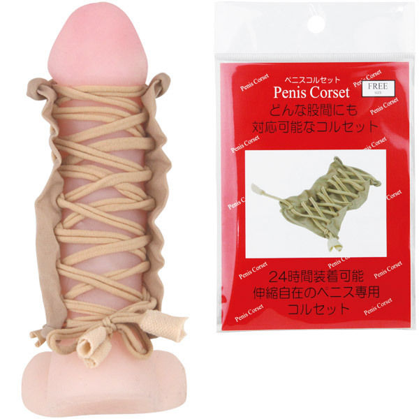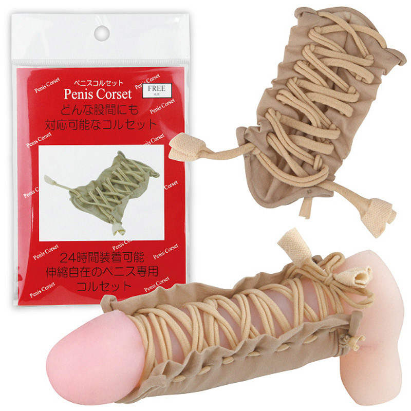 靴紐のようにサイズ調節可!フリーサイズの仮性包茎矯正グッズ「ペニスコルセット」。伸縮性&通気性の良いストッキング素材を採用!本品を股間に被せて亀頭だけを露出させたら、適度にキュキュッと紐を結べばOK!伸縮素材がしっかりフィットして皮戻りを防ぎます。ストッキング素材ですので洗って繰り返しお使いいただけますが、洗濯はもみ洗いをお勧めします。