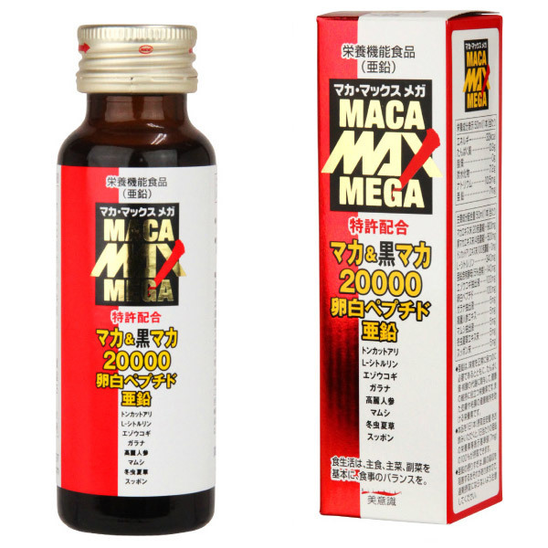 栄養機能食品配合の「マカ・マックス メガ20000」!男性の強壮用ドリンクです。主要成分はマカ・黒マカエキス末やL-シトルリン等。