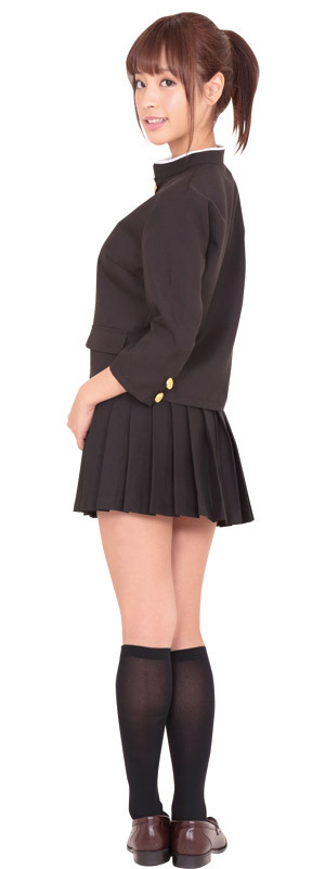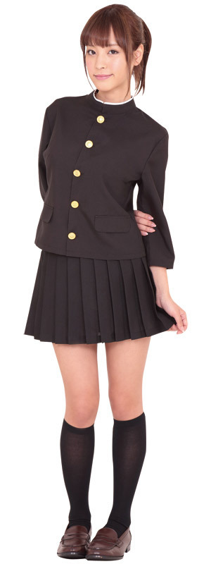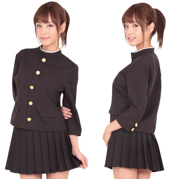 トップスが学ラン?!応援団で頑張る女の子をイメージしたキュートな制服コスチューム。●七分袖・女性サイズに仕立てた丈の短い黒色学ラン●詰襟制服にキラキラと映える金ボタン●ミニスカートはシンプルなプリーツ仕立て。上下2点セット!長鉢巻に白手袋で男子顔負けのエールを送る元気な女子校生風。アニメに登場しそうなかっこいいコスチュームです。※靴下は付属しません。