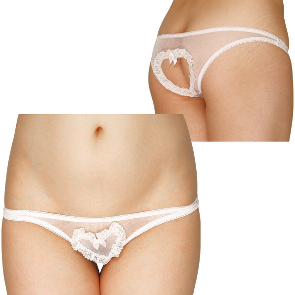 ハートポケット付きOバックシースルーショーツ ホワイト ホワイト
