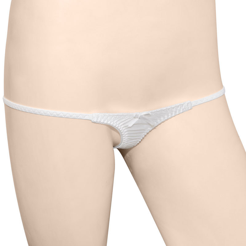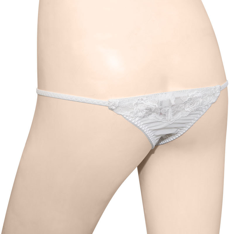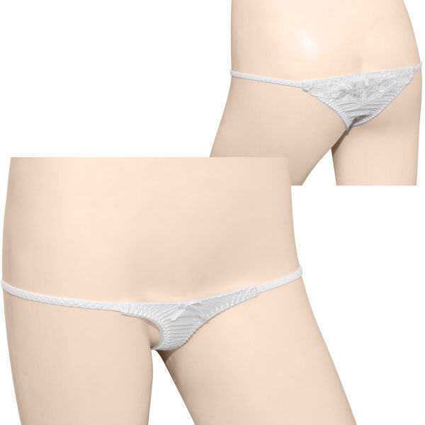 びっくりするほど極小!ギリギリ感に鼓動が高鳴るTバックショーツ。●清楚なピュアホワイトカラー●両サイドは繊細ストリング●ミニリボン付き極小フロント●ローズ柄の刺繍入りTバック●前後とも生地面積少なめ。勝負の夜に堂々とはきこなしたいセクシーランジェリー登場!ミニマムな生地ながらしっかりこだわったレディなデザインがポイントです。