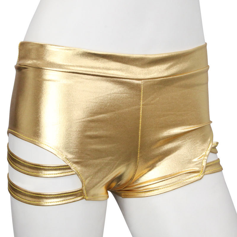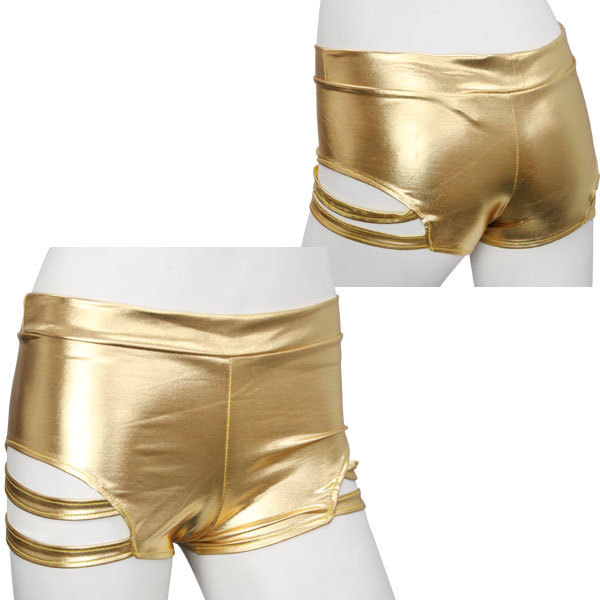 サイドのカット部から覗く素肌がセクシーなメタリックホットパンツ。●光沢感抜群!高級感のあるメタリックゴールド●サイドはオシャレ且つセクシーなカッティングデザイン●Mサイズ。ダンスコスチュームと相性バッチリ!思わず踊りたくなるセクシーコスチュームです。
