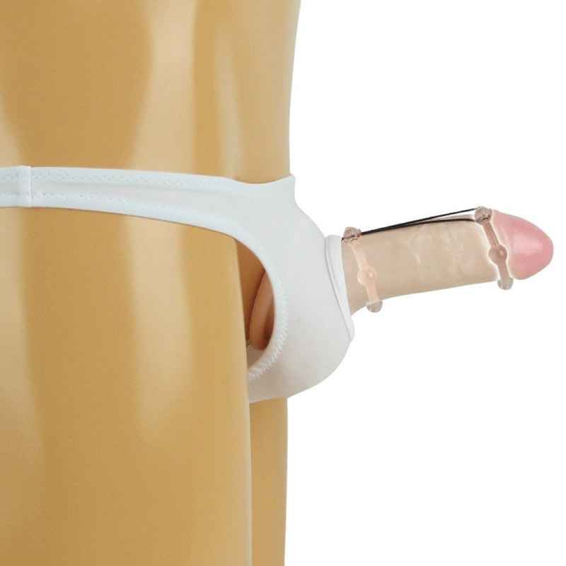 穴とリングで支えてしっかりサポート!パワーリング付きの男性用Tバックショーツ。●ホワイトカラーのメンズTバック●履き心地の良いストレッチ素材●フロントを丸くオープンカット●丸イボ付きのリング●根元から先端まで自在にセット可能。ショーツとリングはストラップで繋がった便利仕様!実用的かつサポート力も備えたメンズランジェリーです。