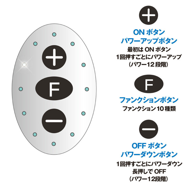 どんな女性も絶対にイカせる…!バイブをこよなく愛するバイブ女子のアンケートによって誕生したシングルローター(ブラック)。●ピンポイントで刺激できるミニローター●ビギナーに嬉しいボタンスイッチ●電源ON&パワーUPは+ボタン●電源OFF&パワーダウンは-ボタン●パターン切り替えはFボタン●12段階の強弱パワー&10種類の振動パターン●飽きさせない全120種類の快感振動●12個のLEDランプ付き・振動の強さによって順番に点灯●静音・生活防水仕様●単四電池×2本使用。全120種類の快感があなたに襲い掛かると同時にLEDランプがムード作りもバッチリしてくれます。オナニーにも愛撫にも役立つシングルローターです。