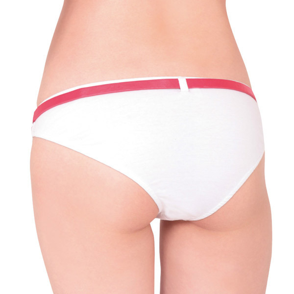 <EROX>思わず見せたくなる可愛さ!オシャレに履きこなせるベルト付きショーツ。●フルバックのホワイトショーツ●サイズ調整可能な赤い細ベルト●サイド部にベルトと交差する赤の縦ライン入り●左右と後ろにベルト通し付き●フルバック&ローライズタイプ。ベルトとショーツのデザインを交差させることで、まるでリボンでラッピングしたかのようなデザインに!見せパンにもしたくなる遊び心溢れるランジェリーです。