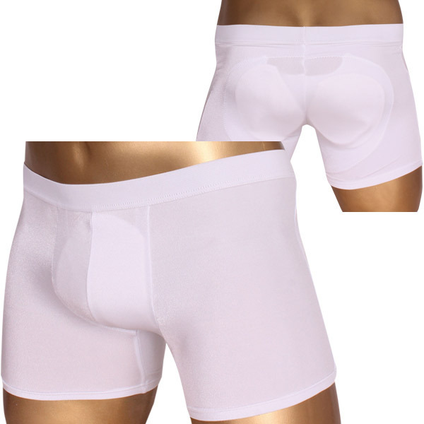 <EROX>内緒でこっそり盛っちゃおう♪男らしいフォルムをフォローしてくれる男性用ランジェリー。●ボクサータイプのメンズショーツ●爽やかで精悍なホワイトカラー●立体縫製による自然な穿き心地●パッド内蔵で下半身をサポート●前面1枚&後面2枚の計3枚内蔵。クロッチやヒップの丸みに合わせて立体的に作られたナチュラルなフィット感!さらに逞しさをアピールするようにパッドを前後に内蔵、モテる男のボディラインへと導きます。