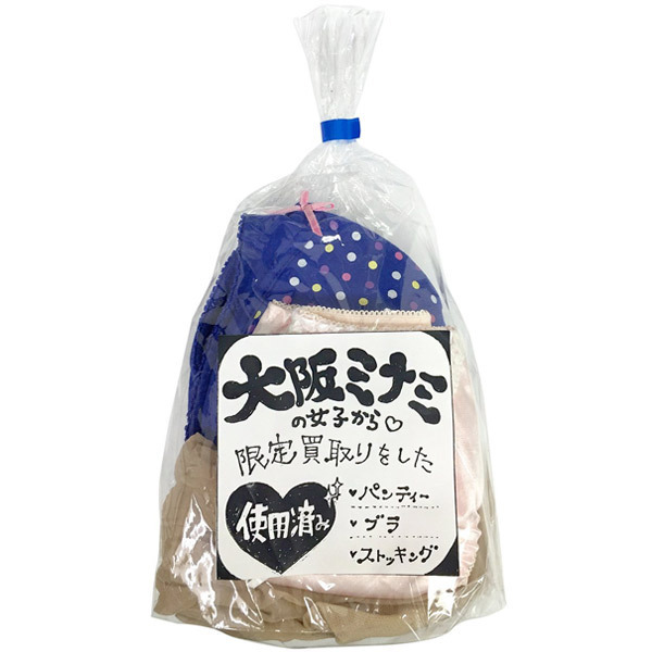 上下+αで興奮倍増!女性用ランジェリーの使用済みセット。●ミナミ(大阪の繁華街)女子限定●リアル感満載の使用済み系下着●ブラジャー×1・パンティ×1・ストッキング×1の3点セット●中身が見える透明パッケージ入り。可愛い系?それともセクシー系?大阪女子からゲットしたランジェリーにはあんなシミや匂いがついてるかも。嗅いだり擦ったり破ったり…オナニーのお供にぜひどうぞ。※アソートとなりますので、色・柄・種類のご指定はできません※USED加工を施した新品未使用品です