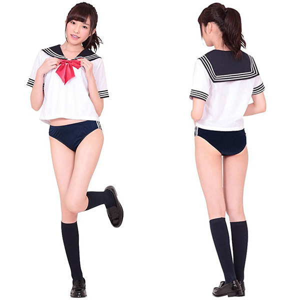 ブルマーの通販ならこれで決まりというぐらいの人気コスプレ同士の最強コンビ♪セーラー服&ブルマのスクールコスチュームセット!ブルマ・体操着といえば様々なカラーのものが出ていますがこちらは定番の紺色です。●ショート丈のセーラートップス●サイドライン入りの紺色ブルマ●キュートな赤リボンもセット。学園コスプレの中でも特に人気の高いセーラー服とブルマが夢の競演!ありそうでなかった組み合わせで、向かうところ敵なしのセクシーコスチュームです♪ブルマのコスプレ用品を通販でご用命ならせひどうぞ。※セット内容以外は付属しておりません。