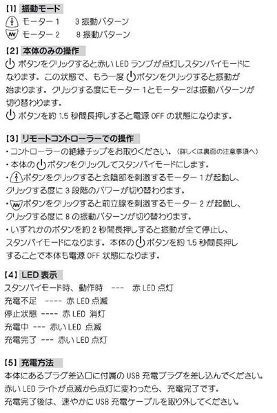 振動をダイレクトに伝える凸凹ボディ!前立腺と会陰部を確実に捉えて刺激する電動エネマグラ。●「LEVETT Funmates」シリーズ・Neroバージョン●上質なシリコン素材を採用●衛生的に使える生活防水仕様●本体→USB充電式・リモコン→ボタン電池(CR2032)●フル充電3時間で最大1.5時間稼働●リモコン操作はもちろん、本体のみの操作も可能●モーター1(会陰部)=3つの振動●モーター2(前立腺部)=8つの振動●いずれかのボタンを約2秒間押すと振動停止(待機モード)●本体のボタンを約1.5秒押すと電源OFF。悶絶してしまうほどの快感がアナタを襲う…!快感も操作性も高クオリティな電動アナルグッズです。※こちらの商品は受注発注商品の為、ご注文から発送までに3、4営業日掛かる場合が御座います。
