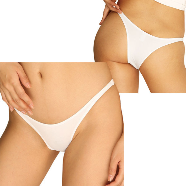 深めのVラインが超セクシー!ハイレグ風マイクロリオバック(ホワイト)。●上下左右によく伸びる2wayストレッチ生地を使用●大胆にヒップを魅せるリオバック●スッキリした履き心地のハギ無しタイプ●日本製・Mサイズ。色といいデザインといい、下半身をスッキリ見せてくれるセクシーランジェリーです。