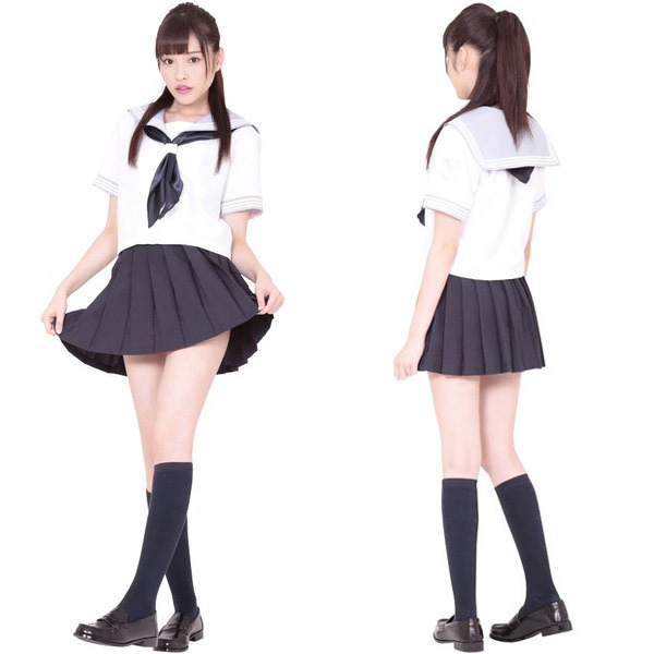 シンプルだけどとってもキュート♪誰もが好きな清純派セーラー服コスプレ。●セーラー服王道のネイビー×ホワイトカラー●校章入りの夏用半袖トップス●パステルカラーのセーラー襟●ひらひら風になびく可愛いプリーツスカート●オシャレのワンポイントになるスカーフもセット●女性用Mサイズ。青春時代の淡い思い出が蘇る、清純なイメージを与えるセーラー服コスチュームです。※セット内容以外は付属しておりません。