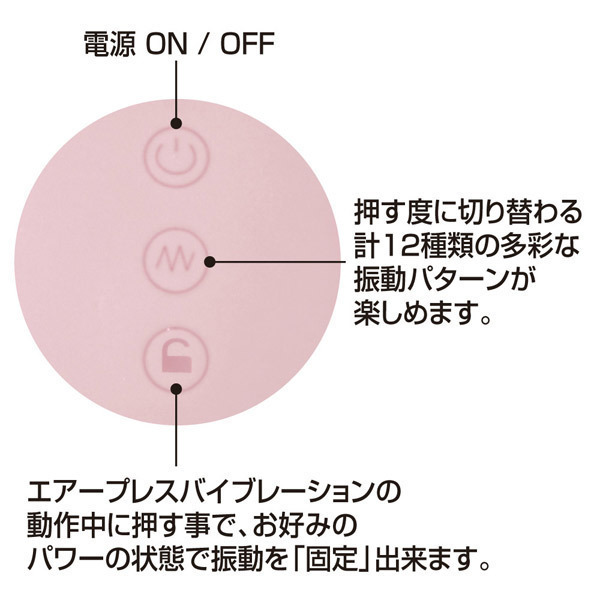 握る圧力で振動をダイレクトにコントロール♪キュートなバルーンフォルムの新感覚ローター。●滑らかな肌触りのシリコン製●瓢箪型のコンパクトなボディ●全長11cm・振動部最大径3cm●乳首やクリトリス責めに最適●下部を握る圧力で強弱調整可●振動パワーのロック機能搭載●12パターン振動はボタン切替●USB充電式(専用ケーブル付属)●充電60分で約90分連続使用可。バルーン状の本体両サイドを押した際の圧力によって、振動パワーを自由にコントロール出来る「エアープレスバイブレーション」機能を搭載!ダイレクトに振動を操ることで、より直感的に楽しめるバルーンローター。「エアープレスバイブレーション」の動作中にお好みの振動パワーのまま固定できるロックボタンを配置!また、バルーンによる振動の強弱以外にも、ボタンプッシュで切り替わる12種の振動パターンも搭載しています。