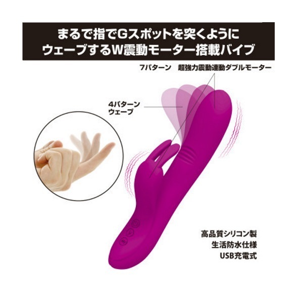 まるで指先のようなアクションをバイブで実現!Gスポットを突くようにウェーブする新感覚バイブレーター。●なめらかな高品質シリコン製●先端&子機に高性能モーター●4パターンのウェービング機能●7パターンのダブル振動を搭載●簡単メンテナンスの生活防水●電源はUSB充電式。手マンのようにGスポットを刺激する「プリティラブ」シリーズのバイブレーター。うさ耳型のクリバイブもいい仕事をしてくれます。