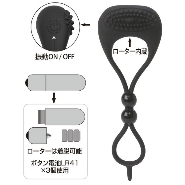 あらゆるサイズに対応♪ループタイデザインのコックリング「プリティラブ バイブレーティングコックタイ」。●高品質シリコン素材のコックリング●2つのボールをスライドして調整●締め付けにより早漏防止をサポート●振動&ブラシでパートナーも刺激●ワンタッチ電源のシンプル振動搭載●ボタン電池LR41×3個付属●ローター部分は着脱可能。ネクタイの様にキュッと締め付け!サイズを問わずに装着出来る男性用補助グッズ。装着パターンによって締め付けるポイントを選択可能!ブラシ状の突起でパートナーへの刺激もしっかりサポートしてくれます。