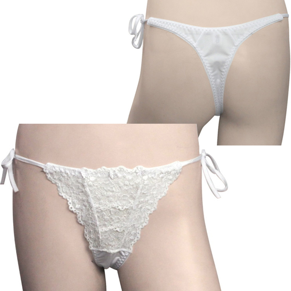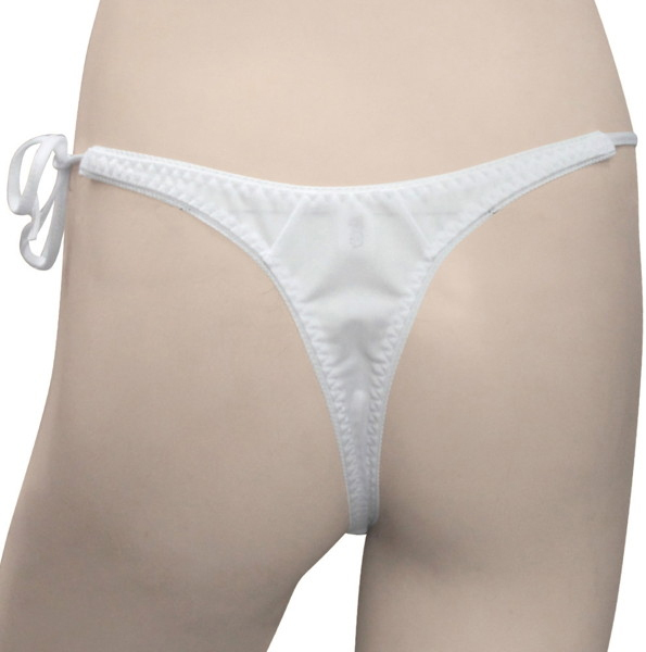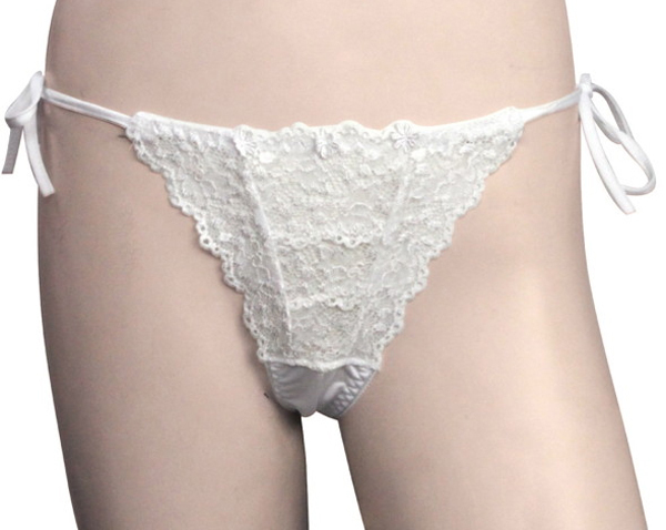 > トリコット生地フラワーレース脇紐オープンTバック ホワイト