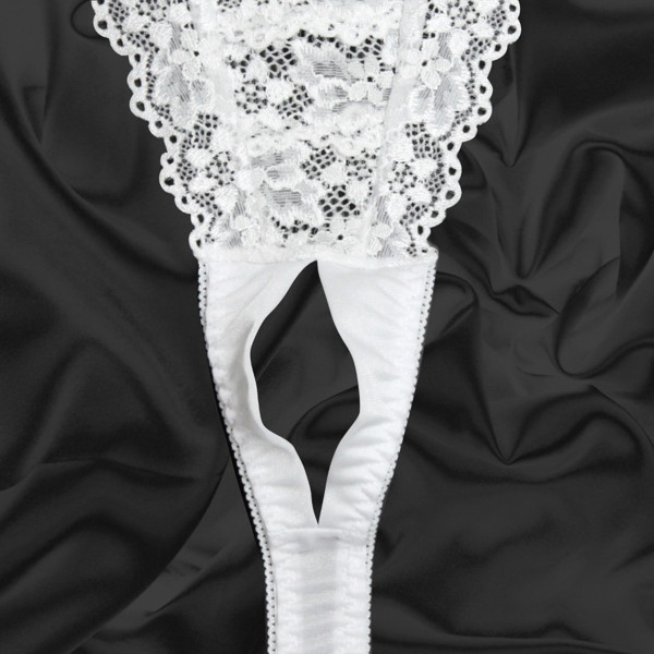 トリコット生地フラワーレース脇紐オープンTバック ホワイト ホワイト