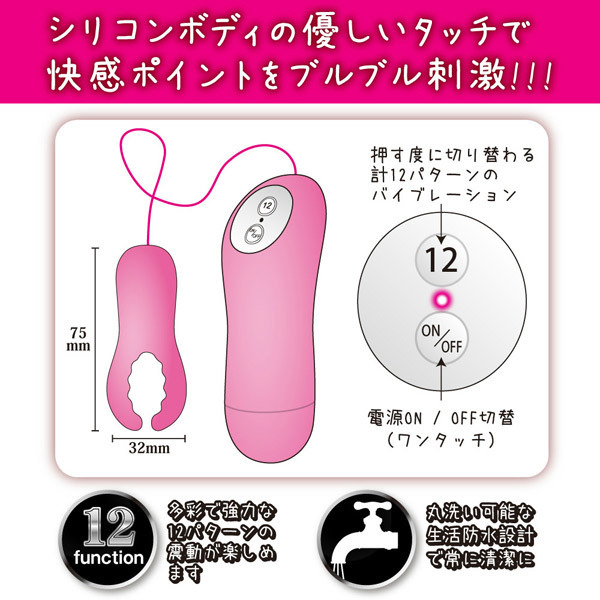 あなたはどっち派?敏感部分をピンポイントで刺激する電動グッズ「外イキローター」。程よい柔らかさのシリコン製ボディ!優しいタッチのアーム2本でクリトリスや乳首を挟み込むようにブルブル刺激します。ボタンを押す度に切り替わる多彩で強力な計12パターンの振動機能を搭載!さらに敏感ポイントだけでなく、アームで男性器を挟んでの刺激も可能です。外イキ派垂涎、至高フォルムのピンクローター!丸洗い出来る生活防水仕様でいつでも清潔に使えます。