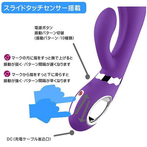 スライドタッチセンサー搭載!高性能トリプルモーターの超強力振動バイブ。●人間工学に基づいたデザイン設計●滑らかな医療グレードシリコン製●挿入時も曲げられる柔軟なボディ●女性でも持ち易いリングの持ち手●ぷっくりとやや大きめの先端部分●敏感な摩擦刺激を生む絶妙なミゾ●快感Gスポットに柔らかくフィット●先端・中腹・子機にモーター搭載●10種類の多彩なバイブレーション●タッチスライドで簡単に強弱調整●静音設計・防水仕様(水深1m迄)●便利なUSB充電式(ケーブル付属)●フル充電2時間で約50分連続稼動●日本語説明書も付属。スッと指を滑らせるだけで振動パターンが変化!スマートフォンのタッチ操作のようなインターフェイスを備えた高性能なバイブレーター。機能性、デザイン性に優れたドイツ発のアダルトグッズブランド「Nomi Tang(ノミタン)」製品です。※充電中は水に濡らさないようご注意ください。