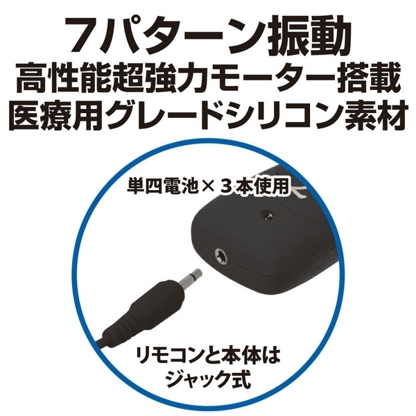 パッケージ:22.0×14.0×3.0cm 本体:全長13.0cm 挿入部分9.5×2.5φcm コード長80cm 電池:単四電池×3本使用