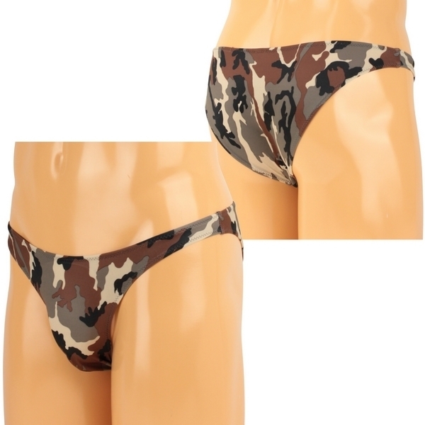 カモフラージュ柄でワイルドに♪全面プリントの迷彩柄メンズハーフバックショーツ。●ブラウン系のカモフラ柄ショーツ●ストレッチ生地でボディにフィット●はき心地の良いハーフバックタイプ●男性用Mサイズ・日本製。カジュアルな迷彩柄がボディを彩るメンズランジェリー!フロントはゆったり大きめに、バックはスッキリとしたハーフバックでセクシーな仕上がりです。