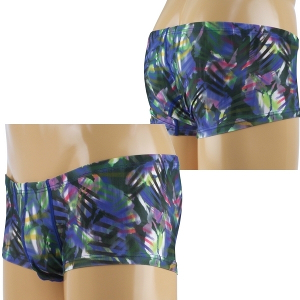 インパクト大のジオメトリック柄でお洒落レベルUP♪幾何学模様がプリントされたメンズボクサーパンツ。●ローライズのボクサーパンツ●ジオメトリック柄を全面プリント●ストレッチ生地で身体にフィット●立体的な縫製のゆったりフロント●メンズ用Mサイズ・日本製。個性的な幾何学模様で差をつけるメンズランジェリー!フロントはゆったりとした立体的な縫製です。