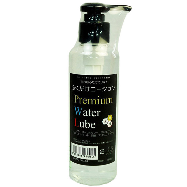水のように滑らかでもヌルヌル感持続!拭き取るだけの「ふくだけローション Premium Water Lube」。●スタンダードタイプ・180ml●適量を出しやすいプッシュボトル●サラサラ愛液風のウォーターベース●オナホールと相性抜群の低粘度●使用後はティッシュで拭くだけ●無香料で自然な潤い。愛液のようにサラサラとした低粘度でソフトなまったり系オナホールに最適!複雑で繊細な内部構造にも素早く馴染むウォーターベースのローション。サッと拭くだけでベタつきが残らず後処理も簡単!愛液に近いナチュラルさは潤い不足の女性にもぴったりです。配合成分:マカ、ローヤルゼリー、アルギニン、マリンコラーゲン、プロバンジオール。