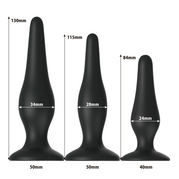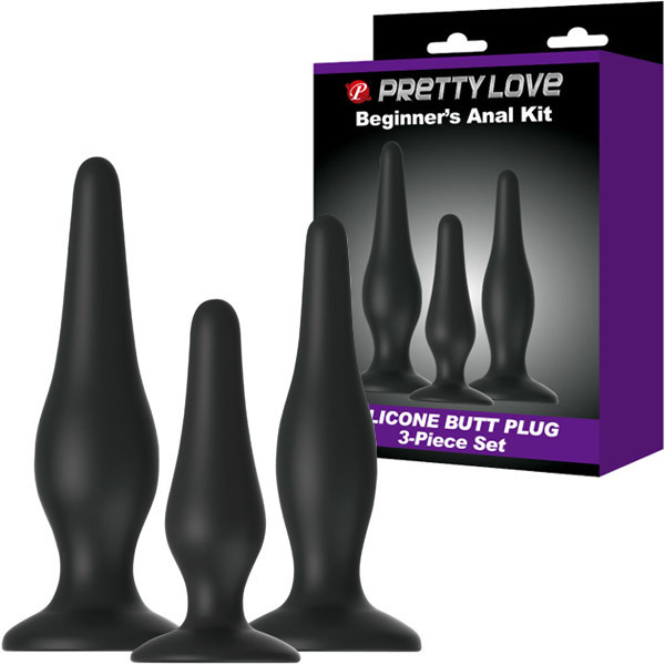 3つのサイズでステップアップ♪初心者さんにオススメな拡張アナルプラグ3本セット「プリティラブ ビギナーズアナルキット」。高品質シリコン素材のボディは大中小の3サイズすべてが無理なく挿入しやすい流線形状!底部には固定できる強力吸盤付き。徐々にサイズを大きくしてステップアップできるビギナーのお尻開発に最適なアナルグッズセットです。