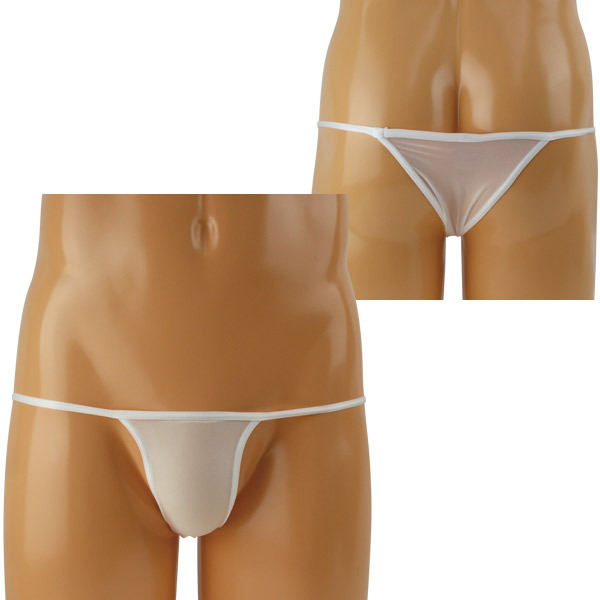ミニマムなスタイルがお好みの方に!軽やかな透け素材の男性用シースルーショーツ。●極薄のホワイトシースルー●良く伸びるストレッチ素材●お尻丸見えな超ローライズ●サイドは華奢なストリング●ハーフバック仕様。スッキリとしたシンプルフォルムでもこだわりを♪上下左右に伸縮するストレッチ素材でしっかりと身体にフィットするセクシーなメンズアンダーウェアです。