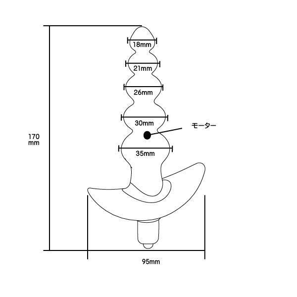 パッケージ:17.5×11.5×6.0cm 本体:全長17.0cm 挿入部直径1.8〜3.5cm ローター9.5×1.7cm 重量:122g 電池:単四電池×1本使用