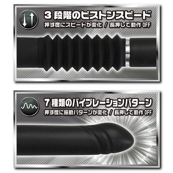 可動域なんと驚愕の6cm!世界最長の豪快ピストンバイブレーター「貫-TURANUKI-つらぬき」。3段階のピストンスピードと7種類のバイブレーションを搭載!可動幅6cmの大迫力ピストンでポルチオに直撃しまくり、先端部分に搭載された強力モーターで快感振動が奥まで響き渡ります。約120分のフル充電で60分の連続稼働が可能なUSB充電式(コード付属)です。