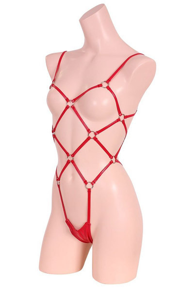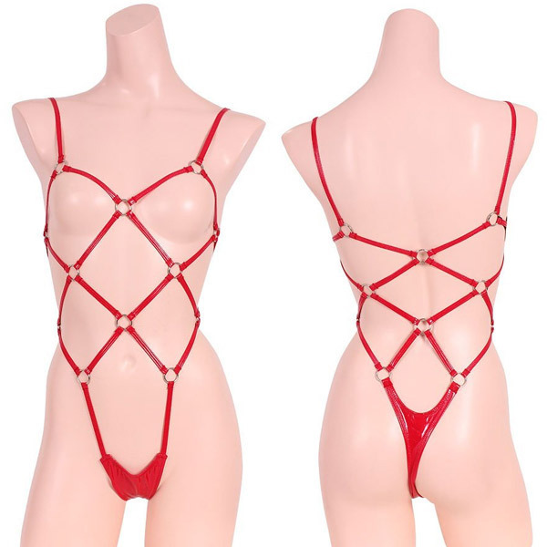 HOME > SMグッズ・拘束具 > ボンテージ > エナメル&リング亀甲プレイスーツ レッド