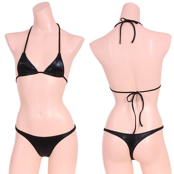 超セクシーなメタリックビキニで悩殺!光沢素材が魅力のブラ&ショーツセット「メタリック三角ビキニペア ブラック」。ブラレットのホルターネックとアンダーバストは紐で調節可能!ショーツはTバックでバックスタイルをより魅力的に。飽きの来ないシンプルな無地デザインで魅せブラ&魅せパンにもぴったりです。世界的なUSメーカーブランド『Shirley OF HOLLYWOOD(シャーリーオブハリウッド)』とコラボした『Cherry Love』シリーズです。※モデル153cm・B83・W56・80cm・Fカップ