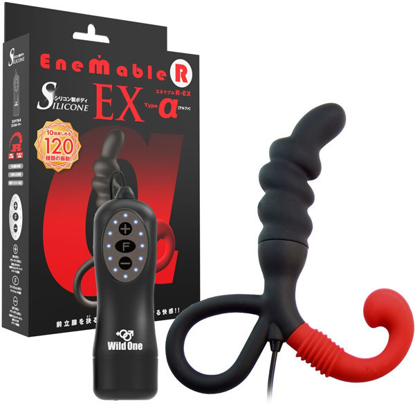 あの前立腺開発グッズ「エネマブル」がグレードアップ♪脳天まで突きぬける120種の快感振動を深い部分で味わえる電動エネマグラ「ENEMABLE R EX Type-α」。サラッとした肌触りで高級感あふれるマットコート仕様の前立腺刺激グッズが全120種類の振動を可能にした新モデルのIC機能付きコントローラーで登場!微弱から激震への12段階スピードに加え、多彩な10種類の振動パターン変化機能を搭載しています。会陰部を刺激するフックには3段階調整可能な可動式アームを採用し、確実に会陰部を刺激します。超低速からターボモードまで飽きのこない多彩な振動を搭載した深化系アナルグッズ!湧き上がるような快感を生み出す『アルファタイプ』は立体ウェーブ構造が特徴です。単四電池×2本付属。