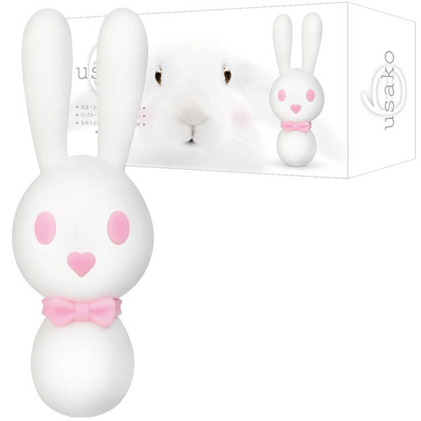 白くてかわいい♪シリコン製のウサギ型ハンディマッサージャー「白うさこ」。ボディには滑らかな肌触りのシリコン素材を採用。可愛らしい見た目でも振動はとっても強力!両耳の先端とお腹の計3ヶ所に10パターンのバイブレーション機能を備えた強力モーターを搭載。ハートのお鼻でスイッチON!両目のボタンで両耳とお腹の振動をそれぞれ個別に操作可能です。両方のお耳で挟み込んでピンポイント刺激したり、お腹部分を使えばデンマプレイもできちゃうアニマルローター。お風呂でも使えるIPX-6レベルの防水仕様なので丸洗いも出来ます。USB充電式(コード付属)。振動中&充電中はほっぺが可愛く光ります。