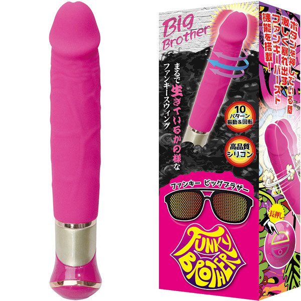 まるで生きているかのよう!滑らかすぎるスウィング機能が搭載された「ファンキービッグブラザー」。リアルなペニス型のストレートボディは亀頭部分に強力なモーターを内蔵!10パターンの振動+スイング機能に加え、ボタンを押している間は生き物のように激しく暴れるファンキーバースト機能が発生。さらに、亀頭部に内蔵された強力モーターによる振動でポルチオを刺激する通常回転から、生き物のような予測不能の小刻み回転まで楽しめます。USB充電式(コード付属)。