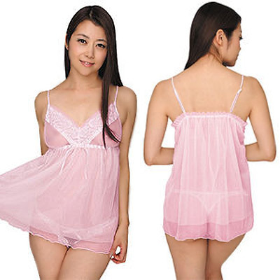 フラワーモチーフシースルーベビードール&ショーツ ピンク ピンク