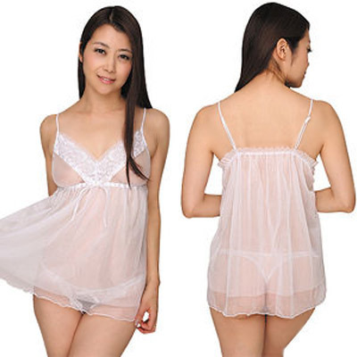 フラワーモチーフシースルーベビードール&ショーツ ホワイト ホワイト