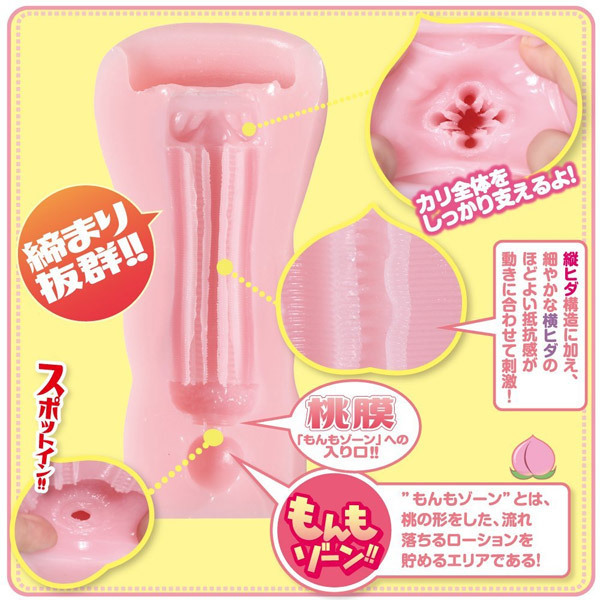 締まり抜群の「桃ずきんちゃんdeもんもん」オナホール!全体を覆う快感縦ヒダ構造は、おなぺっと素材を最大限に体感できる構造の非貫通タイプです。ゾリゾリッとカリ・ウラスジをしっかりと刺激する8本のロング縦ヒダはまさに新境地そのもの!ほどよい抵抗感が動きに合わせて刺激してくれるので挿入時のアクセントになり、最奥のもんもんゾーンでは、桃の形をした桃膜が流れ落ちるローションをしっかりと受け止めながら、ちゅぱちゅぱと亀頭に吸い付き貴男を快感の渦へと導いてくれます。