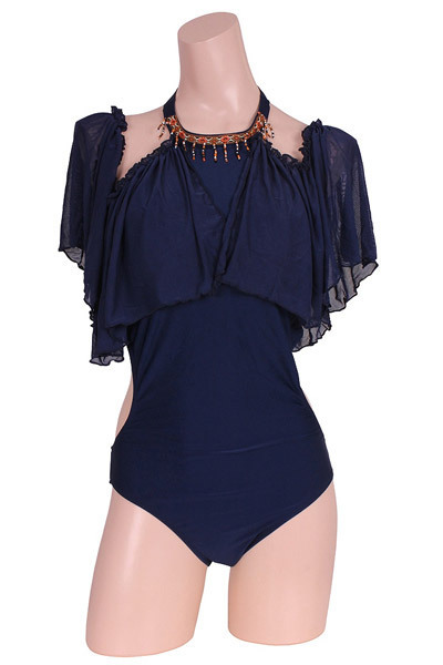 ネイビーをセクシーにさせた!洗練美を加速するメッシュ素材のオフショルダーのワンピーススイムウエアー。デコルテのジャガード織テープと同色のビーズがラグジュアリー感をひと目で印象つけ、体型カバーもしていただけるデザインです。※こちらの商品は受注発注商品の為、ご注文から発送までに3、4営業日掛かる場合が御座います。