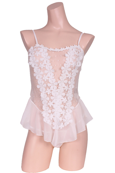 フロントに花柄モチーフをVラインにあしらい、裾のシフォンフリルでウエストのくびれを強調!ベースは模様入りストレッチネットだからフィット感抜群のベビードールとTバックの豪華セット。癒やしのホワイトカラー!※こちらの商品は受注発注商品の為、ご注文から発送までに3、4営業日掛かる場合が御座います。